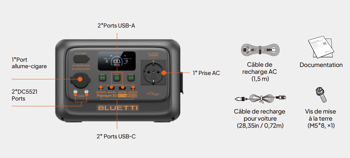 La BLUETTI Premium 30 V2 est une station d’énergie portable compacte conçue pour alimenter des appareils électriques en mobilité ou en secours domestique. Elle se positionne comme une solution polyvalente, silencieuse et durable, adaptée au camping, vanlife, chantier léger ou backup domestique.