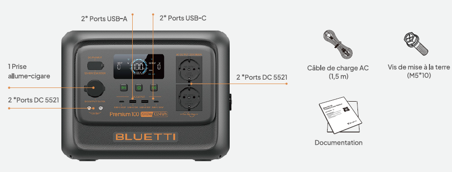 La BLUETTI Premium 100 V2 est une station d’énergie portable compacte conçue pour alimenter des appareils électriques en mobilité ou en secours domestique. Elle se positionne comme une solution polyvalente, silencieuse et durable, adaptée au camping, vanlife, chantier léger ou backup domestique.